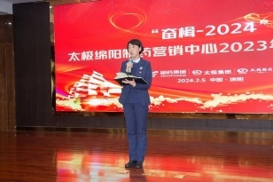 会议上,营销中心总经理朱明作2023年度营销工作总结及2024年营销工作思路报告。2023年,依托公司十四五战略规划总体指导,通过聚焦“山峰”,主品突破,细分业态,狠抓新零售业务等措施,营销中心全员团结协作,攻坚克难,开拓进取,公司营收及利润实现双增长,单年增长额创历史新高,圆满完成公司下达的任务。奋楫-2024,我们将继续以业绩文化(结果为导向,不进则退)为指导思想,以“没有信心决心的不要干,没有思路方法的不要干”为团队理念,依托“国药太极”大平台,深挖“百年绵药”企业文化,强化“中华老字号”品牌宣传;围绕“225”产品战略布局,进一步优化产品结构,健全销售网络,充分发挥新零售、诊所、医疗板块快速发展的牵引作用,全面开启数字化营销管理新征程。