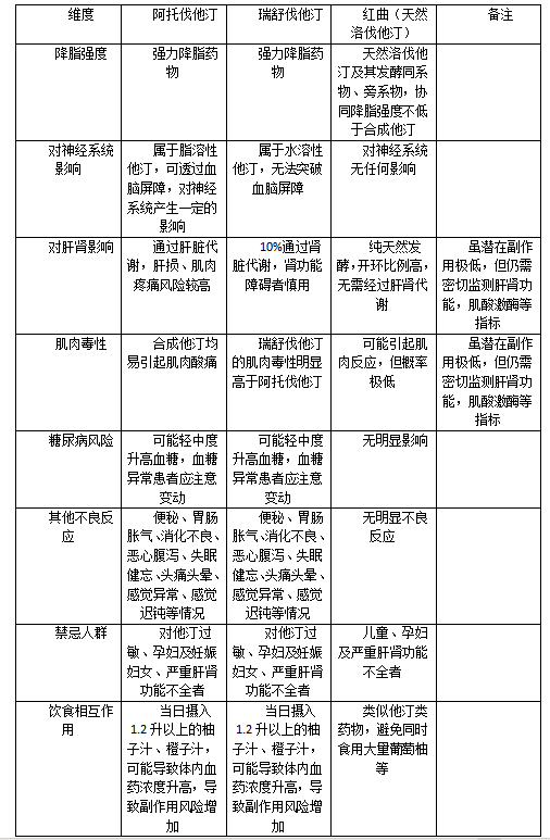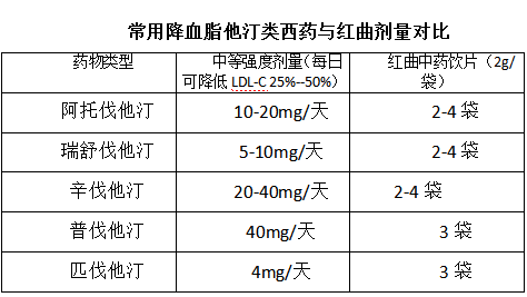 常用降血脂他汀类西药与红曲中药饮片