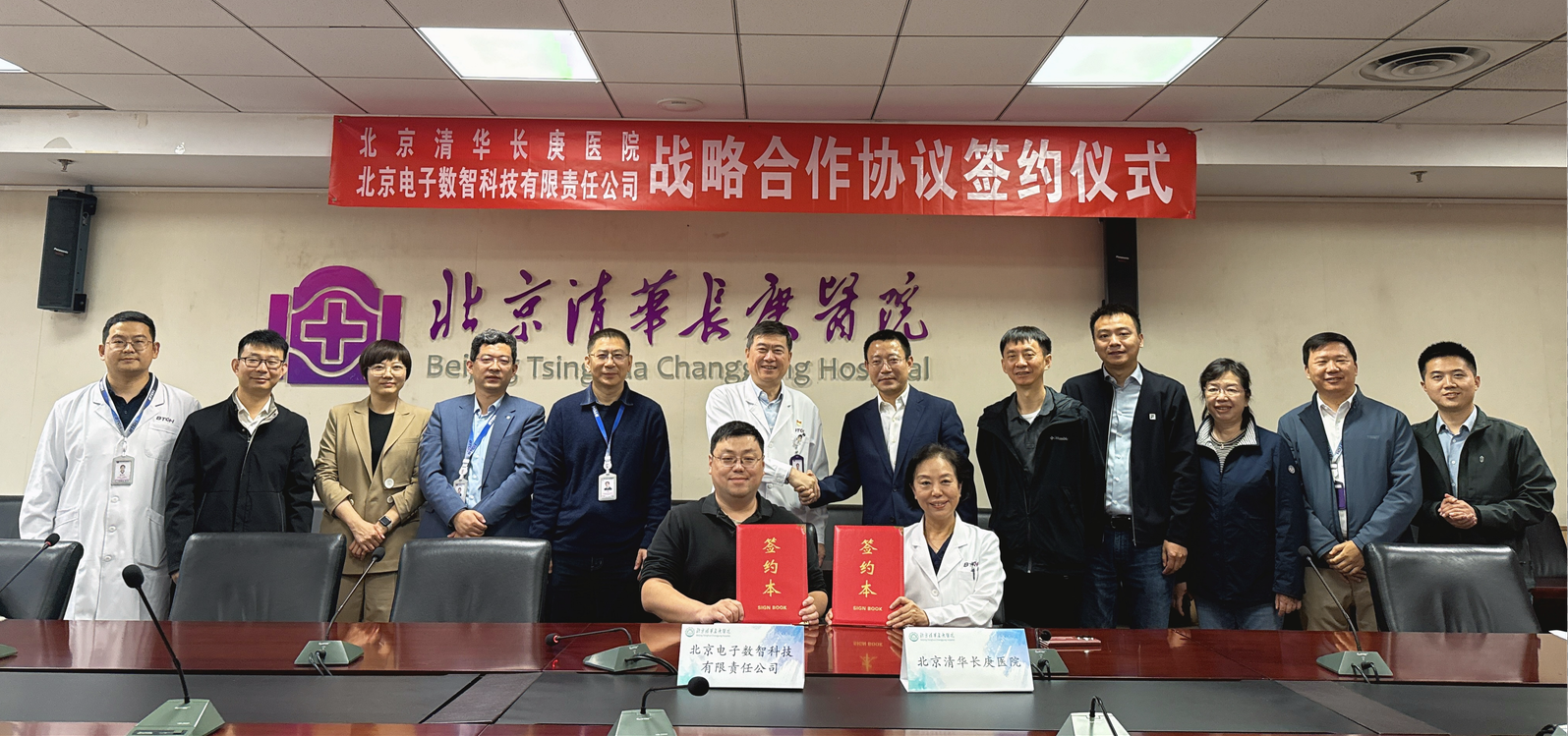 北京清华长庚医院院长董家鸿院士,北京清华长庚医院副院长张萍,北电数智董事长荆磊,北电数智首席科学家、复旦大学特聘教授窦德景,北电数智产业生态负责人吴岳,AI可信负责人邵兵等出席签约仪式。